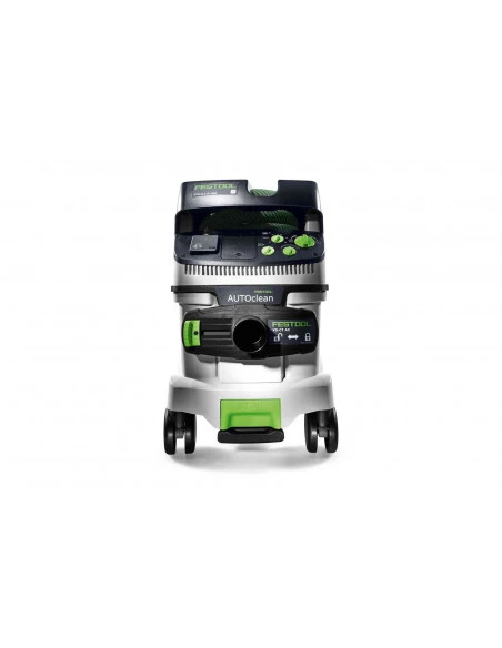 Doté d’une cuve de 36 l, l’aspirateur Festool offre un grand volume grâce à sa géométrie de cuve généreuse. Il est équipé de roulettes pivotantes et de roues arrière pour une parfaite mobilité ainsi que d’un frein de blocage pour assurer la stabilité sur tout type de sol. Le filtre plat entièrement intégré dans la tête d’aspiration permet de tirer pleinement parti du volume : le volume brut et le volume net de la cuve sont quasiment identiques. La turbine hautes performances extrêmement compacte fournit la puissance d’aspiration requise. Avec 3900 l/min de débit volumique, il ne laisse que de l’air pur derrière lui. L’aspirateur 575846 est donc agréé pour l’aspiration des poussières de catégorie L. sur les chantiers.